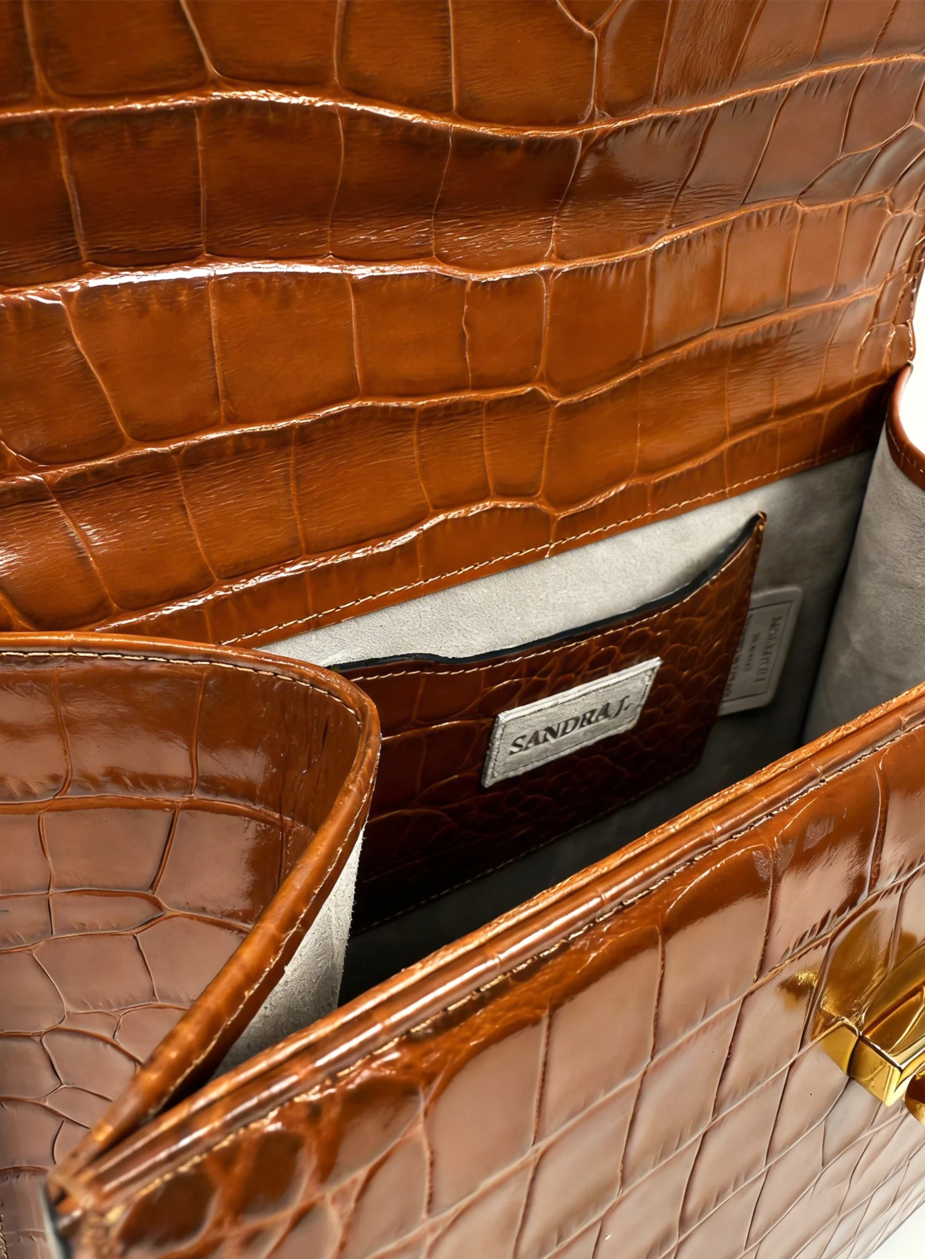 This elegant Handbag is crafted from premium Crocodile 40-Printed Italian Leather and lined with soft suede throughout the interior. It features shiny palladium hardware, including a designer-engraved lock for a refined touch.