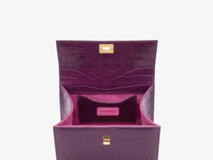 This elegant Handbag is crafted from premium Crocodile 40-Printed Italian Leather and lined with soft suede throughout the interior. It features shiny palladium hardware, including a designer-engraved lock for a refined touch.