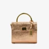 This elegant Handbag is crafted from premium Metalic-Printed Italian Leather and lined with soft suede throughout the interior. It features shiny palladium hardware, including a designer-engraved lock for a refined touch.