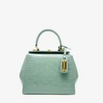 This elegant Handbag is crafted from premium Crocodile Patent-Printed Italian Leather and lined with soft suede throughout the interior. It features shiny palladium hardware, including a designer-engraved lock for a refined touch.