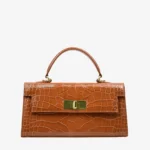 This elegant Handbag is crafted from premium Snake-Printed Italian Leather and lined with soft suede throughout the interior. It features shiny palladium hardware, including a designer-engraved lock for a refined touch.