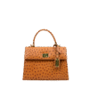 This bag is crafted from Ostrich print. Lined with soft suede throughout interior, it’s accented with shiny palladium hardware including a designer-engraved lock. Opt to remove the shoulder strap and carry yours by the top hand.