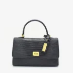 This bag is crafted from Crocodile print leather. Lined with soft suede throughout interior, it’s accented with shiny palladium hardware including a designer-engraved lock. Opt to remove the shoulder strap and carry yours by the top hand.