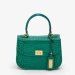 This handbag is crafted from crocodile patent-embossed leather and lined with soft suede throughout the interior. It’s accented with shiny palladium hardware, including a designer-engraved lock. Carry it by the structured top handle or attach the removable shoulder strap for versatile styling