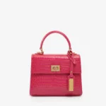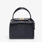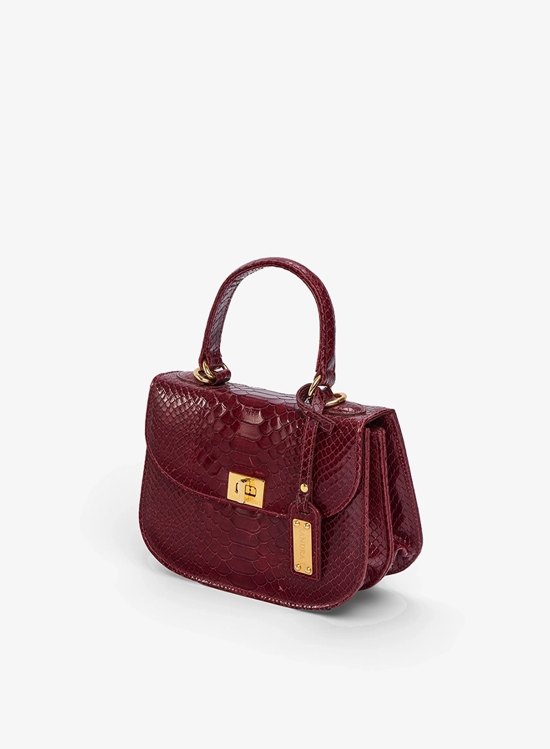 This elegant Handbag is crafted from premium Snake-Printed Italian Leather and lined with soft suede throughout the interior. It features shiny palladium hardware, including a designer-engraved lock for a refined touch.