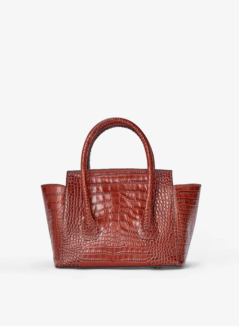This elegant Handbag is crafted from premium Crocodile2 8-Printed Italian Leather and lined with soft suede throughout the interior. It features shiny palladium hardware, including a designer-engraved lock for a refined touch.