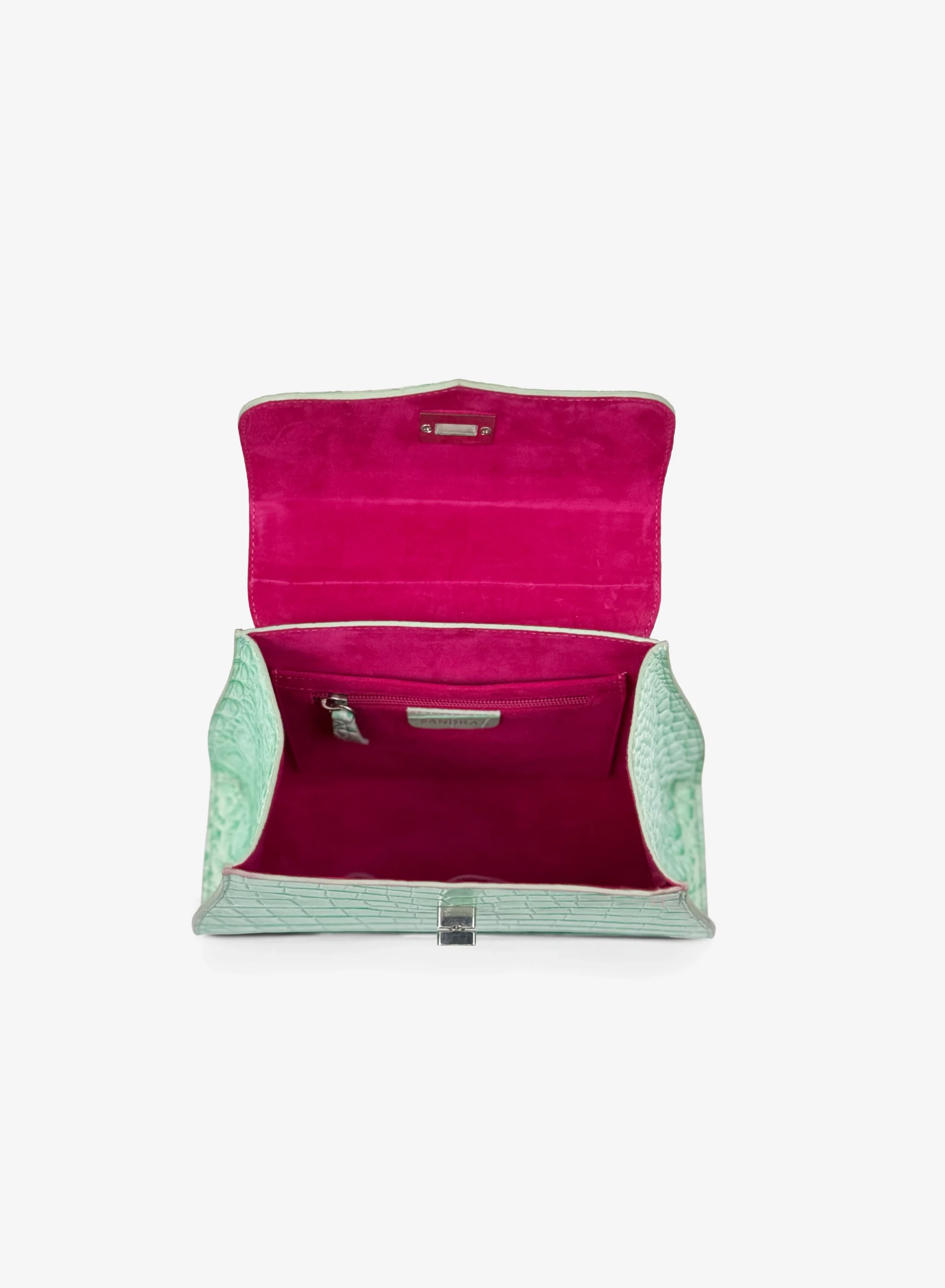 This elegant Handbag is crafted from premium Crocodile 40-Printed Italian Leather and lined with soft suede throughout the interior. It features shiny palladium hardware, including a designer-engraved lock for a refined touch.