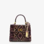This elegant Handbag is crafted from premium Crocodile 28 Patent-Printed Italian Leather and lined with soft suede throughout the interior. It features shiny palladium hardware, including a designer-engraved lock for a refined touch.