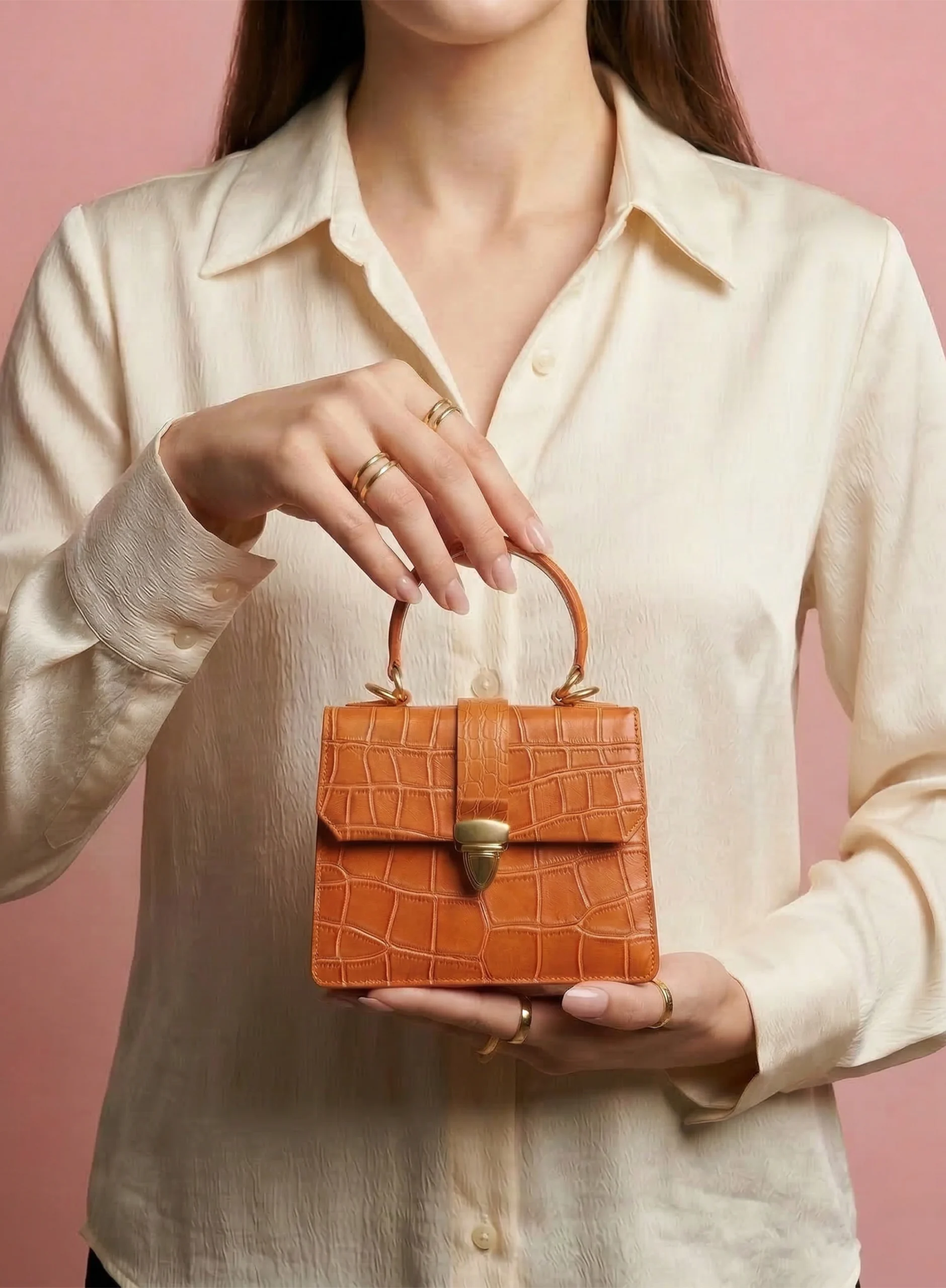 This elegant Handbag is crafted from premium Crocodile 40-Printed Italian Leather and lined with soft suede throughout the interior. It features shiny palladium hardware, including a designer-engraved lock for a refined touch.